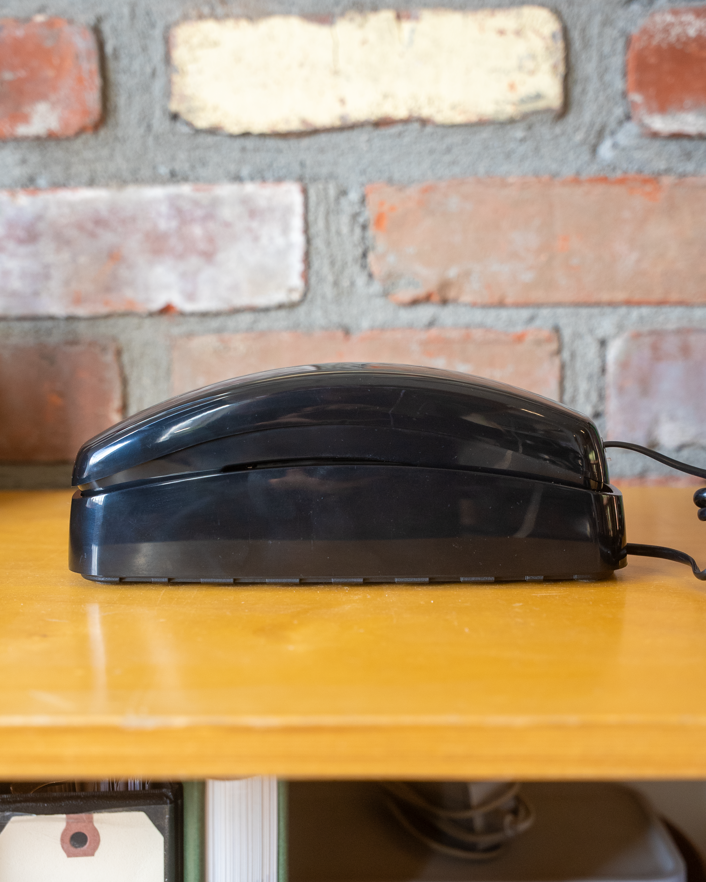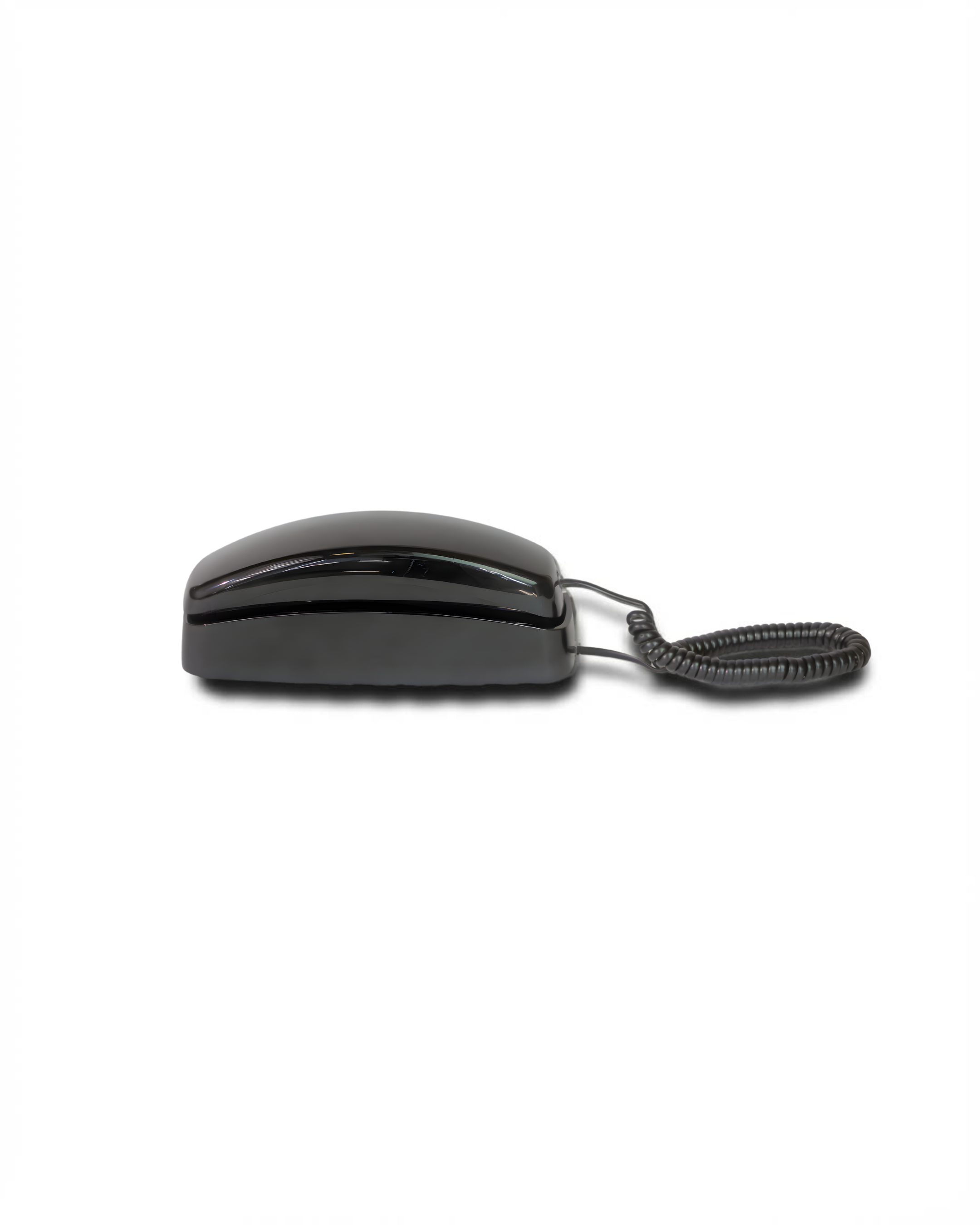 Bluetooth-compatible, table top or wall mounted push-button handset phone in a midnight black finish.