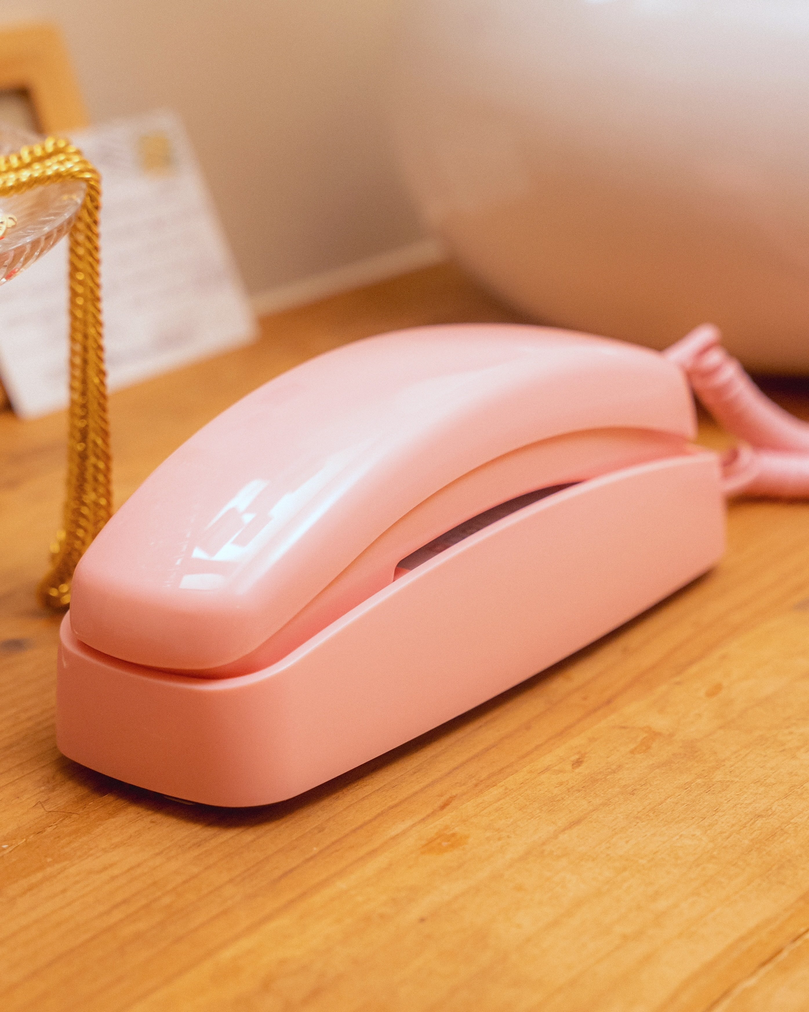 Bluetooth-compatible, table top or wall mounted push-button handset phone in the perfect bubblegum pink finish.